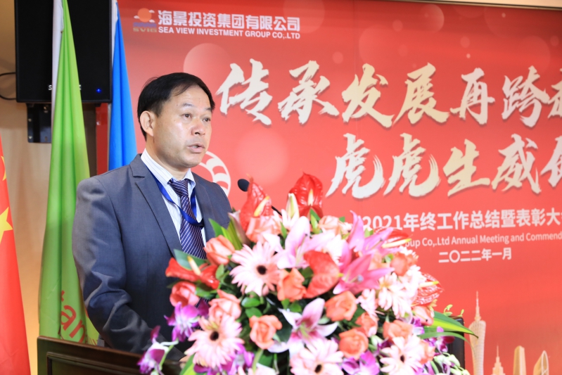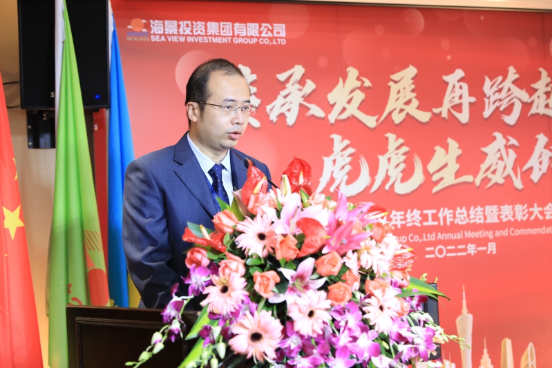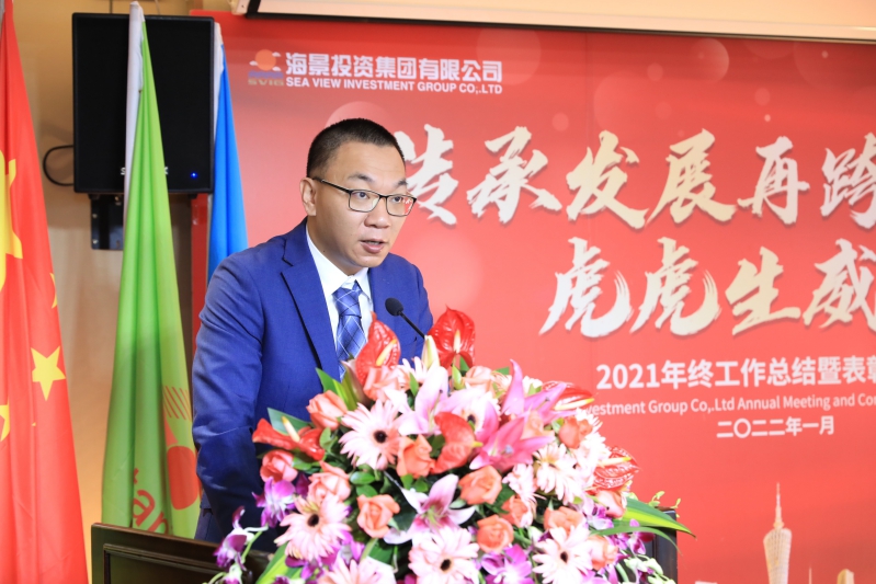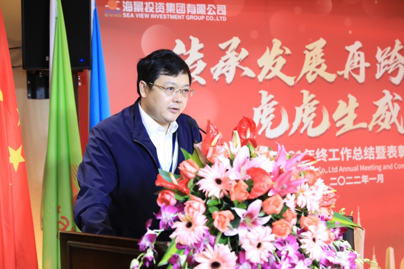 「海纳我才智,才智溶海景,我与海景共荣辱,海景与我同辉煌」,在全体员工牢记于心的「人企信念」诵读声中,大会正式开始。回首、沉淀,是为了更好地蓄力,总结、提升,是为了更好地前行,接下来是集团公司高层管理人员述职以及朱炯耀总裁做《海景集团 2021 年度工作报告》。朱炯耀总裁指出,过去的一年,是强化管理抓实效、经营业绩稳步攀升的一年,在董事局的正确引领下,坚持稳中求进的工作总基调,稳健增长、防控风险,全体员工认真落实各项工作部署,经营实现健康发展,取得了预期的经营目标和业绩成果!他同时剖析了 2021 年工作开展和日常管理中存在的不足,进而对 2022 年度集团重点工作进行了安排。