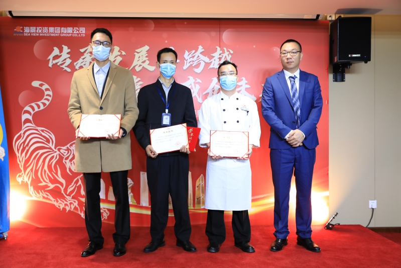 海景集团秉承「任人唯贤、唯才是举」的用人理念,非常重视人才的培养、激励以及职业生涯规划,致力于为员工成长创造优良的内部环境。为表彰先进、树立典型,同时激励员工敬业、爱岗、奉献,本次大会针对 2021 年取得优异成绩的员工和集体给予了表彰和颁奖,现场颁发的奖项有:集团公司 2021 年度「优良员工」、「优秀员工」,集团公司 2021 年度「优良管理干部」、「优秀管理干部」,酒店公司 2021 年度「优秀员工、管理干部」,物业公司 2021 年度「优秀员工、管理干部」,文化协会 2021 年度「优良理事」,连续三年「优秀员工」和 2021 年度「先进集体」。成绩斐然的 2021 年悄然落幕,挑战满满的 2022 年已经到来,让我们学习榜样、汲取力量,不忘初心、勇于担当、持续奋斗,创造海景更加美好的未来!