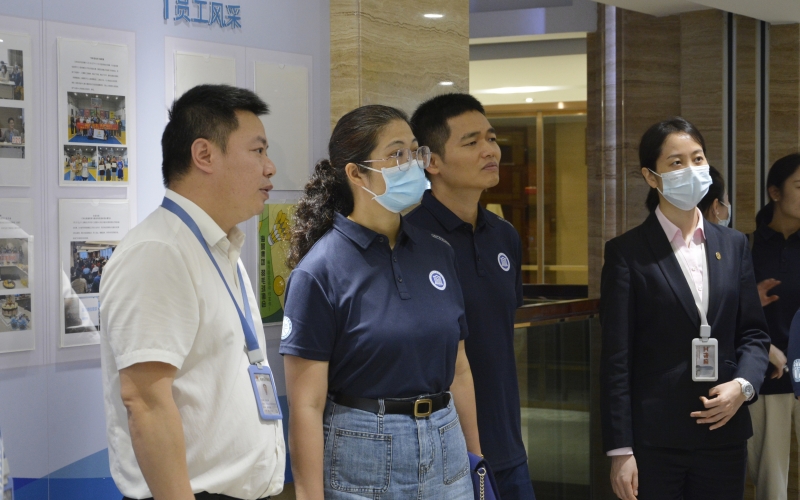 来到海景集团总部办公楼后,首先由行政人力资源中心副总经理刘志兵向学校团队介绍了海景集团的发展历程、企业文化以及部分荣誉证书。刘总特别提到荣誉室内“尊师重教”的荣誉证书,介绍了海景集团在近两年疫情期间做的公益项目,于惠来县成立高等学府优秀学子激励奖金,为考取优异成绩的学生捐赠奖学金,助力教育事业发展。荣誉墙上“基层党组织示范单位”的荣誉证书引起了学校团队的关注,在得知海景集团在党建引领方面的突出贡献后,谭金凤副院长表示民营企业能重视党建工作是非常值得认同和赞扬的事,这都体现了海景集团的责任与担当。